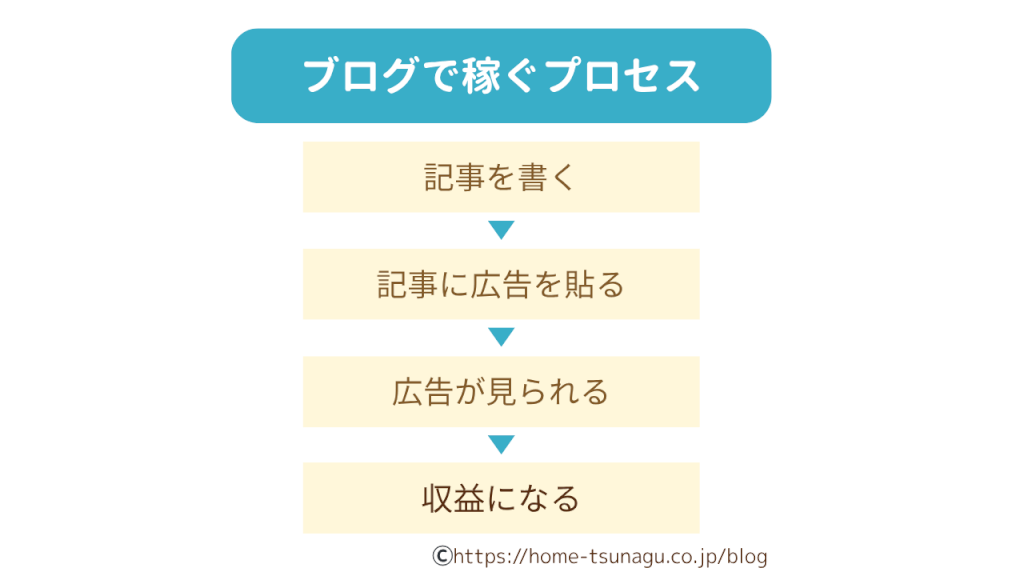 ブログを通して収入を得るプロセスを簡単にまとめると、以下のようになります。