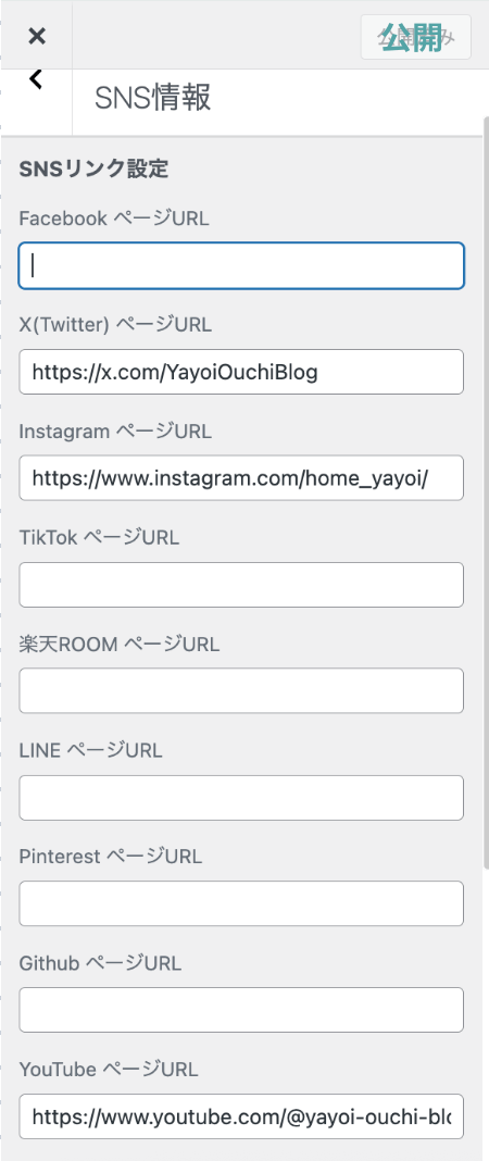 URLの入力が完了したら、右上の公開ボタンを押して保存します。