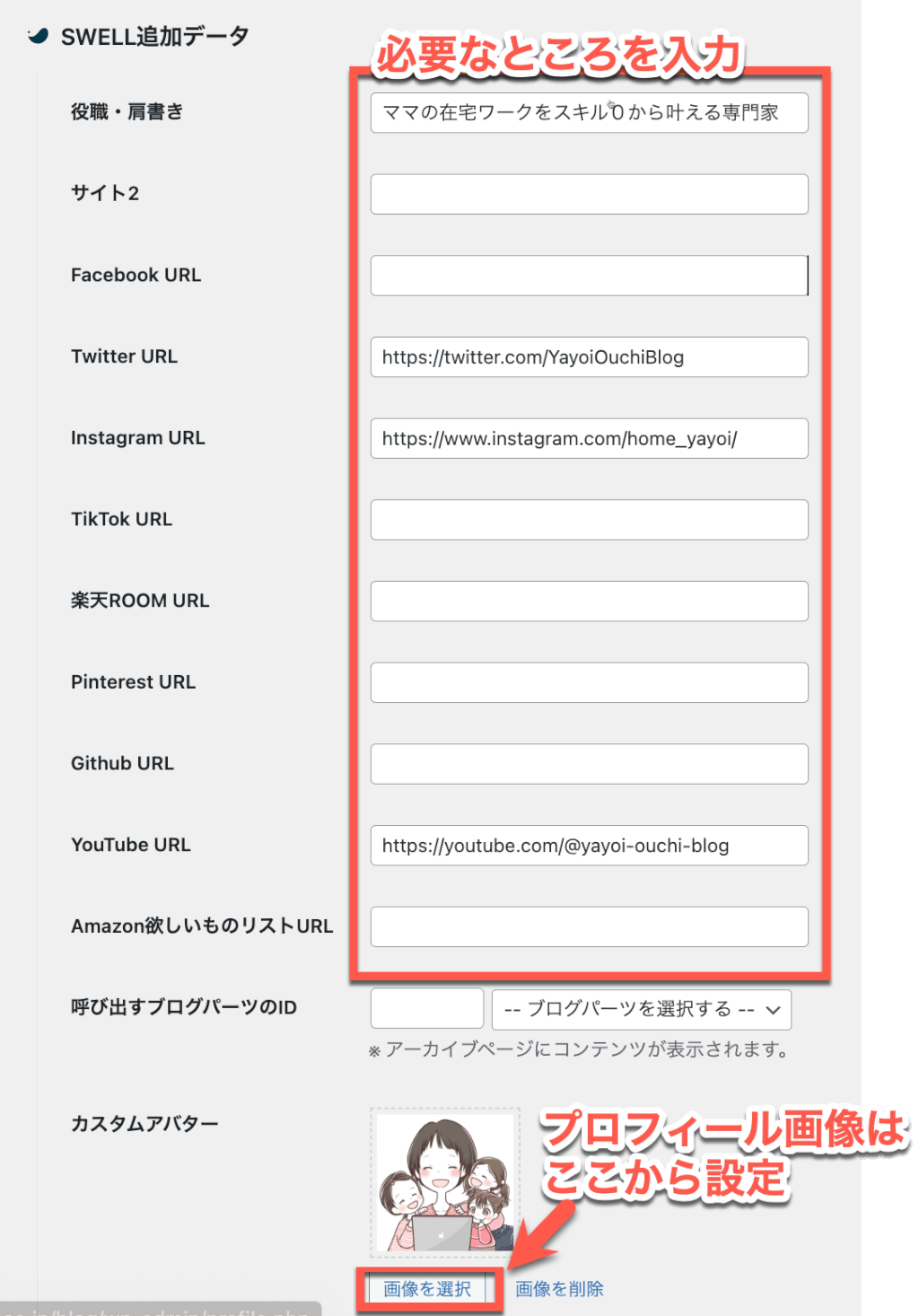【画像解説】SWELLプロフィール5分で設定!”この記事を書いた人”もおしゃれに
