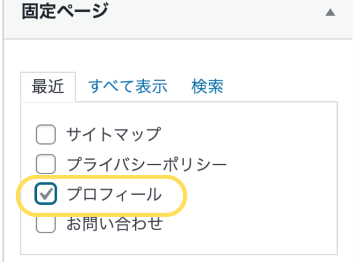 プロフィールを表示させる箇所が選択肢で出てきました。