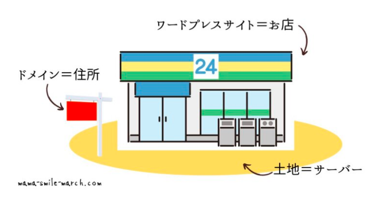 サーバーは、ブログサイトを運営する場所・スペースで、家やお店を立てる「土地」のイメージです。